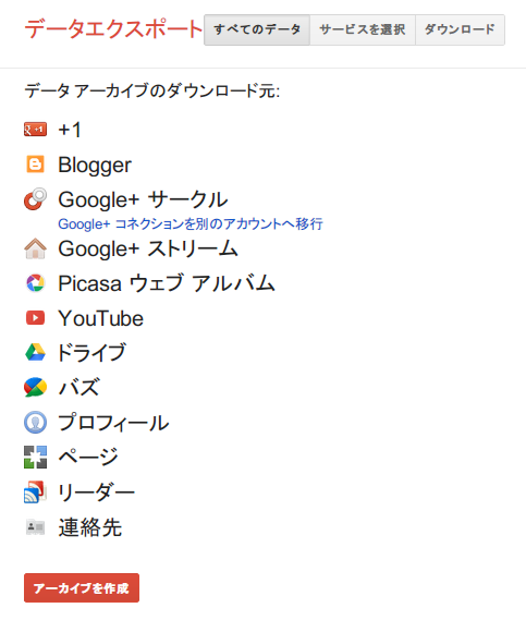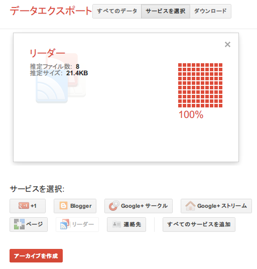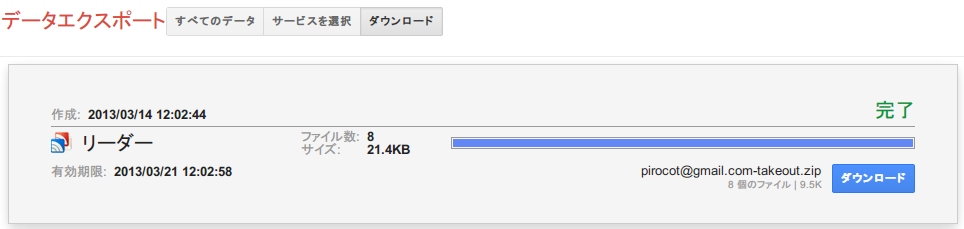 Google リーダー データのエクスポート