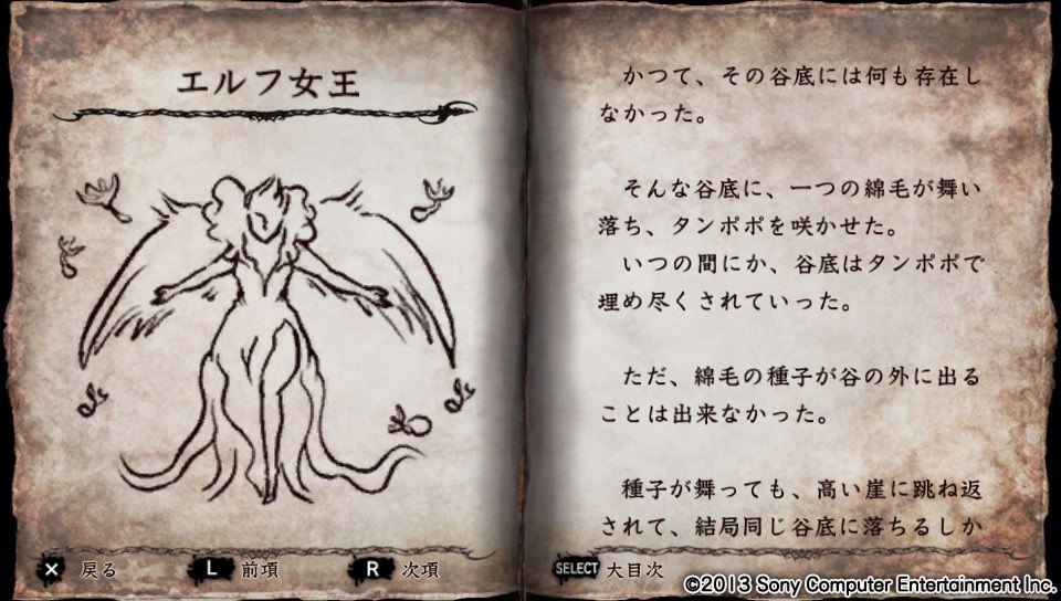 他にも雑魚の1匹に至るまでこんな風なエピソードが数ページに渡って添えられており引きこまれます。魔物も元は人間、どうして魔物になったかを知ってしまうと普段の狩りもまたひとつ違った感情を覚えることでしょう。